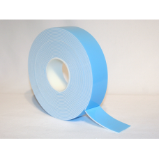 This is a double-coated adhesive foam tape, 1/16” thick, white in color, with a blue poly release..