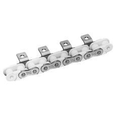 Tsubaki Poly Steel Chain is lube-free, low noise and lightweight (approximately 50% less than standard steel chain). Ambient temperature: -10°C to 80°C (14°F to 176°F). Tsubaki Poly Steel Chain support certain corrosive resistance for some industrial application.